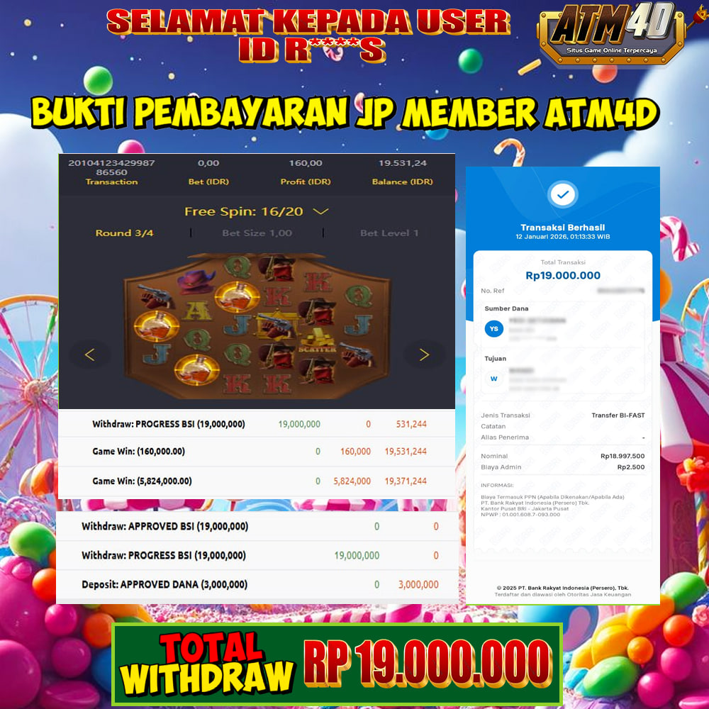 Jangan lewatkan kesempatan untuk meraih kemenangan besar. Daftar sekarang di ATM4D dan rasakan pengalaman bermain slot terbaik yang pernah ada! Putar gulungan, menangkan jackpot, dan jadilah bagian dari komunitas pemain sukses kami!