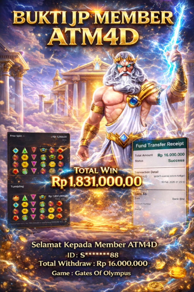 Jangan lewatkan kesempatan untuk meraih kemenangan besar. Daftar sekarang di ATM4D dan rasakan pengalaman bermain slot terbaik yang pernah ada! Putar gulungan, menangkan jackpot, dan jadilah bagian dari komunitas pemain sukses kami!