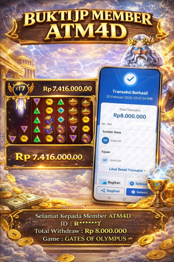 Jangan lewatkan kesempatan untuk meraih kemenangan besar. Daftar sekarang di ATM4D dan rasakan pengalaman bermain slot terbaik yang pernah ada! Putar gulungan, menangkan jackpot, dan jadilah bagian dari komunitas pemain sukses kami!