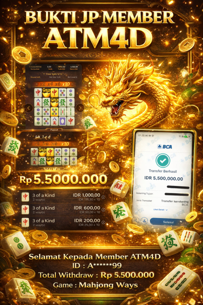 Jangan lewatkan kesempatan untuk meraih kemenangan besar. Daftar sekarang di ATM4D dan rasakan pengalaman bermain slot terbaik yang pernah ada! Putar gulungan, menangkan jackpot, dan jadilah bagian dari komunitas pemain sukses kami!