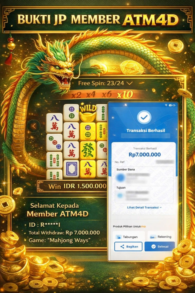 Jangan lewatkan kesempatan untuk meraih kemenangan besar. Daftar sekarang di ATM4D dan rasakan pengalaman bermain slot terbaik yang pernah ada! Putar gulungan, menangkan jackpot, dan jadilah bagian dari komunitas pemain sukses kami!