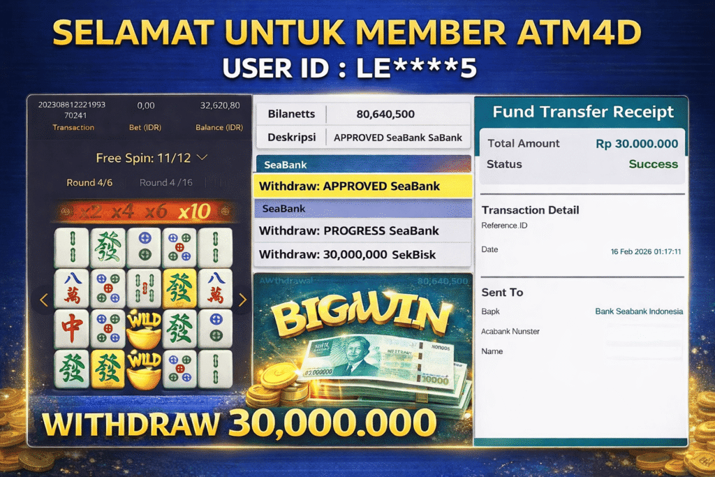 Jangan lewatkan kesempatan untuk meraih kemenangan besar. Daftar sekarang di ATM4D dan rasakan pengalaman bermain slot terbaik yang pernah ada! Putar gulungan, menangkan jackpot, dan jadilah bagian dari komunitas pemain sukses kami!