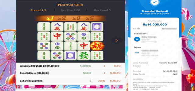 Bukti Kemenangan slot di provider JACKPOT SLOT MAHJONG WAYS 16 JANUARI 2026