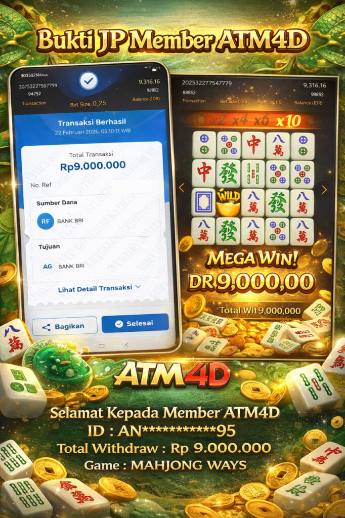 Jangan lewatkan kesempatan untuk meraih kemenangan besar. Daftar sekarang di ATM4D dan rasakan pengalaman bermain slot terbaik yang pernah ada! Putar gulungan, menangkan jackpot, dan jadilah bagian dari komunitas pemain sukses kami!