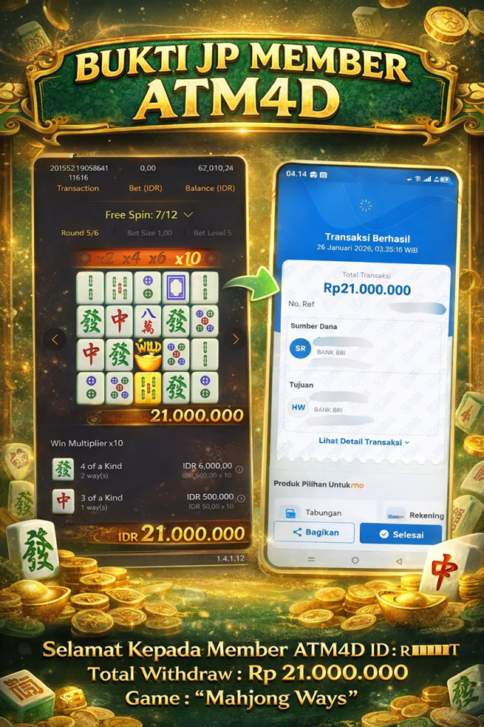 Jangan lewatkan kesempatan untuk meraih kemenangan besar. Daftar sekarang di ATM4D dan rasakan pengalaman bermain slot terbaik yang pernah ada! Putar gulungan, menangkan jackpot, dan jadilah bagian dari komunitas pemain sukses kami!