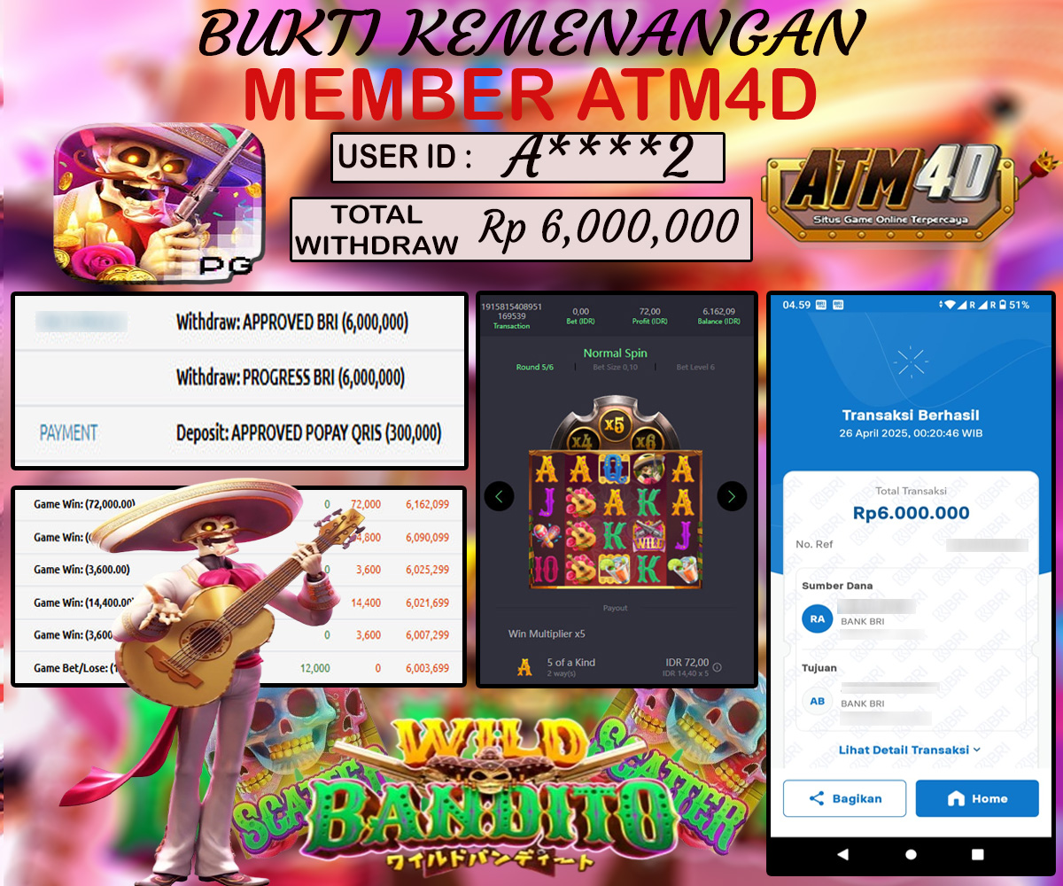 Jangan lewatkan kesempatan untuk meraih kemenangan besar. Daftar sekarang di ATM4D dan rasakan pengalaman bermain slot terbaik yang pernah ada! Putar gulungan, menangkan jackpot, dan jadilah bagian dari komunitas pemain sukses kami!